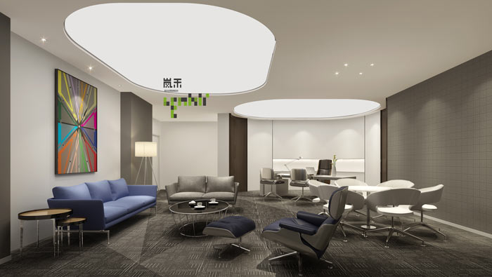 辦公室20樓前臺設計:20樓的前臺與18樓的前臺在造型設計上基本相似,設計師為了避免空間出現過渡的同質化,故此在色彩上做了改變,目的就是希望因為色彩的改變讓空間煥然一新。