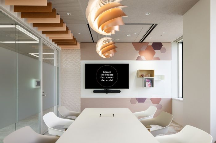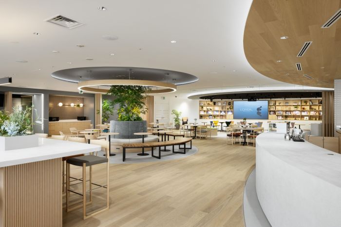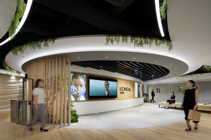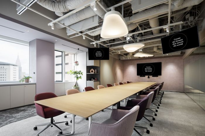 這是一個化妝品品牌的辦公室,有6300方的面積。辦公室采用了傳統美學的四季、紋理、家具和裝飾。辦公室采用了活動式工作模式,以支持新的工作方式,重視員工的獨立性和多樣性,并將混合辦公作為主要前提。