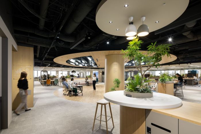 并且設立了實時直播間,以滿足數字時代的需求。為了關注員工的健康,室內種植了綠色植物,并使用了可調節亮度的LED燈。