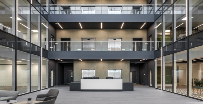 采用了主動式設計,可通往一樓的餐飲區。我們還確保認真實施所有照明和通風,以最好地滿足作為一家技術公司的特定需求,并為他們留出空間來安裝自己的自定義視聽功能。