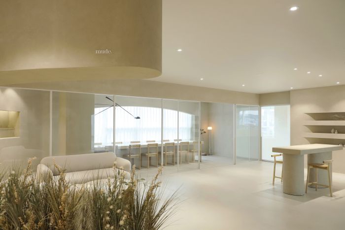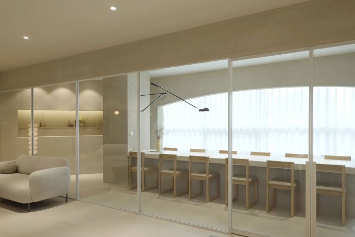 米色的色調(diào)和柔和的光線為空間營(yíng)造出舒適的氛圍。整個(gè)空間呈現(xiàn)出一種輕松、優(yōu)雅的感覺(jué)。 企業(yè)希望在為員工提供更好的工作環(huán)境的同時(shí),可以讓員工產(chǎn)生更多的靈感。設(shè)計(jì)師將自然元素和紋理放入空間中,希望為空間提供舒適而獨(dú)特的體驗(yàn)。