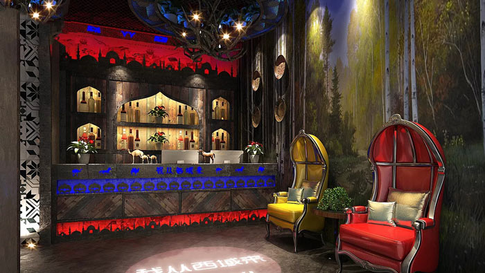 特色主題餐廳大廳設(shè)計(jì):整個(gè)空間給人的第一感覺(jué)就是異域的風(fēng)情,但這里最好的還是美食,設(shè)計(jì)師希望此處可以成為大家,了解新疆的一個(gè)窗口,讓此處成為記憶中的味道。