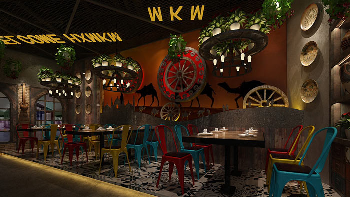 本次特色主題餐廳裝修設(shè)計(jì)方案講解到此結(jié)束,在本次餐廳設(shè)計(jì)中,設(shè)計(jì)師以工業(yè)風(fēng)格為主基調(diào),搭配新疆元素,目的就是為了將其融合在整個(gè)空間設(shè)計(jì)之中。
