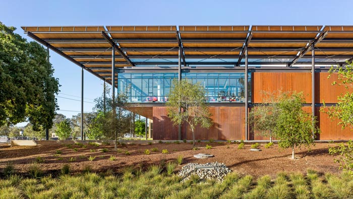 辦公樓進(jìn)門區(qū)域的設(shè)計:頂部折疊的設(shè)計,可以將強光擋在遮光板之外,讓光經(jīng)過阻擋后變?yōu)槿峁猓@樣的轉(zhuǎn)換讓人可以免受強光的照射,同時遮光板也有吸收太陽能的作用,經(jīng)過專業(yè)設(shè)備的轉(zhuǎn)換,為日常照明、工作提供了免費的電源,設(shè)計與設(shè)計之間環(huán)環(huán)相扣,讓廠房自身的節(jié)能趨于完美。