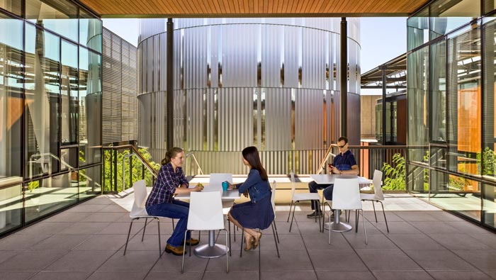 廠區(qū)的設(shè)計:此處的風(fēng)景是一位室外設(shè)計師所設(shè)計的,在設(shè)計中兩位設(shè)計師做了全面的溝通,這樣做的目的就是希望室內(nèi)、室外可以融為一體,室外設(shè)計師也受到業(yè)主的感染,在設(shè)計中加入了各種節(jié)能設(shè)計,讓整個空間宛如一體。