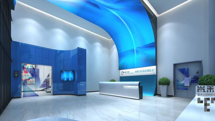 前臺大廳的設(shè)計:設(shè)計師在設(shè)計的時候,采用色彩+燈光的方式對空間進(jìn)行設(shè)計,天藍(lán)色的設(shè)計會令人聯(lián)想到海空無限延伸的開放與深遠(yuǎn),同時天藍(lán)色也有濃濃的科技屬性,這樣與企業(yè)的屬性相融合,其次就是燈光的設(shè)計,燈光與色彩之間的相互搭配更能映襯出企業(yè)的實(shí)力,讓人產(chǎn)生可靠、信賴的感覺。