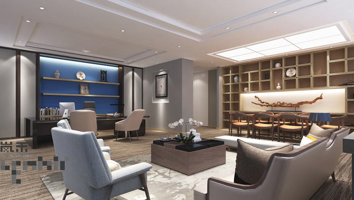 總經(jīng)理辦公室的設(shè)計:設(shè)計師在設(shè)計的時候,將辦公區(qū)域、休息區(qū)域、接待區(qū)域、交流區(qū)域、展示區(qū)域相互融合在一起,對于設(shè)計師來說,多重融合的空間在于極簡、在于融合,故此設(shè)計師經(jīng)過無數(shù)次的融合、打亂、融合、打亂的方式不斷進(jìn)行重組,在不斷重組的過程中,完成了多功能空間的相互融合。