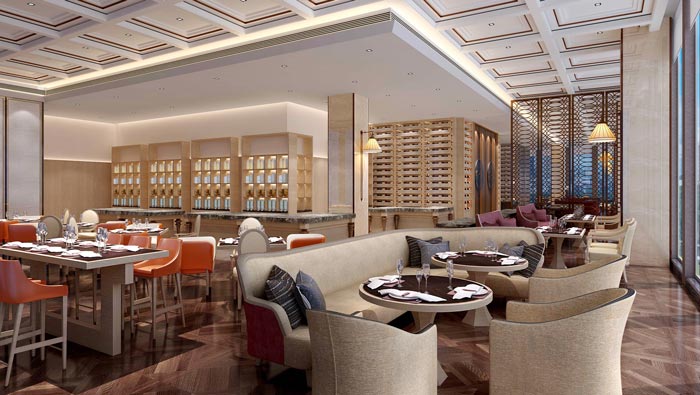 餐廳的設(shè)計:足不出戶是酒店給人的第一感受,在這里就是希望形成一個良好的內(nèi)部循環(huán),讓客戶在內(nèi)部體驗到所有需要的服務,在這里設(shè)計師以家對餐廳進行定義,在設(shè)計師看來現(xiàn)在社會最缺的就是一種氛圍,一種家的氛圍,設(shè)計師希望客戶在這里可以體會到家的感覺。