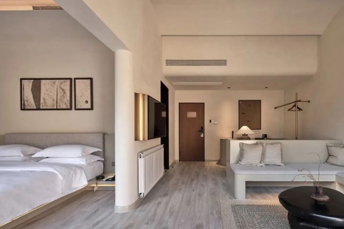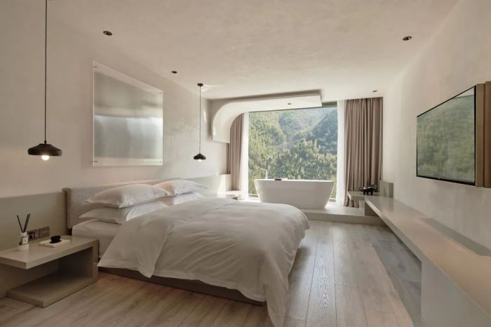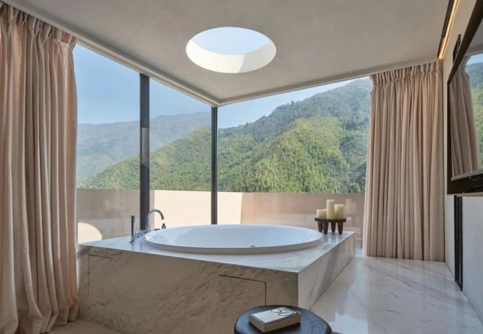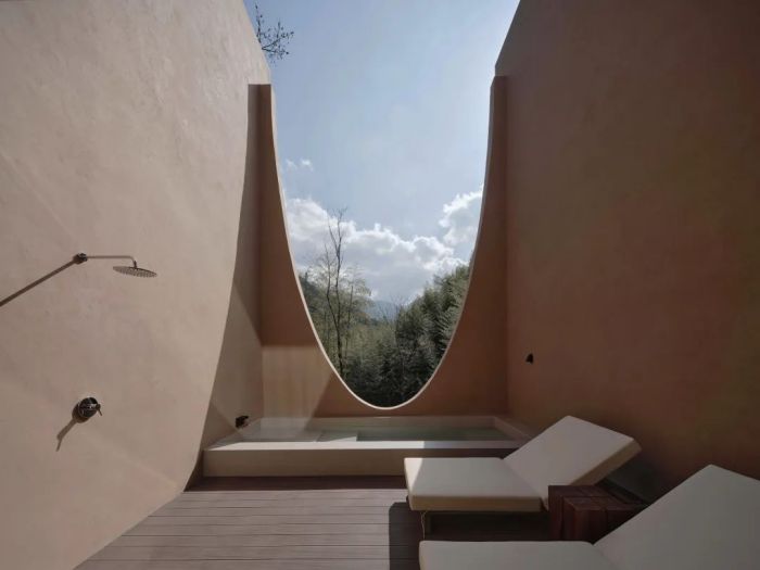 善侒酒店位于竹海山林深處,建筑設(shè)計(jì)融入自然元素,采用當(dāng)?shù)夭牧希宫F(xiàn)出與自然和諧共存的美感。酒店擁有17間客房,各自擁有獨(dú)特的風(fēng)景和設(shè)計(jì)特色,比如“赤樓”的米色墻面和流暢線條、“頤樓”的私享庭院以及“需樓”的巨大U型泡池。