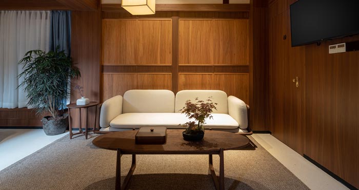 本次為民宅民宿設(shè)計項目,在設(shè)計中保留原建筑的柱網(wǎng)空間,同時以院落為中心,將空間劃分為四個客房區(qū)域,整體呈現(xiàn)中軸對稱的格局。