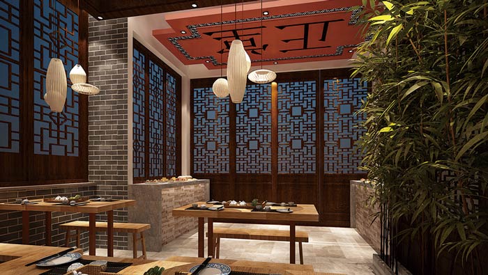 本次中式面館裝修設計方案講解到此結束,面館設計之所以采用中式風格,是業主希望客戶可以慢下來,慢慢的品嘗美食,讓自己的生活節奏也慢下來,讓客戶在這里感受到慢下來的感覺。