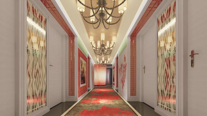 走廊的設(shè)計(jì):在此處我們好像行走在城堡之中,這樣的感覺是那么的與眾不同,戀人在這里感覺自己就是這里的主人,這也是設(shè)計(jì)師希望給大家的一種感覺,設(shè)計(jì)師希望剝離酒店的陌生之感,因?yàn)樵谠O(shè)計(jì)師看來,很多酒店給客戶的感覺就是熟悉的陌路人,即熟悉又那么的陌生,這也是設(shè)計(jì)師需要盡量避免的。
