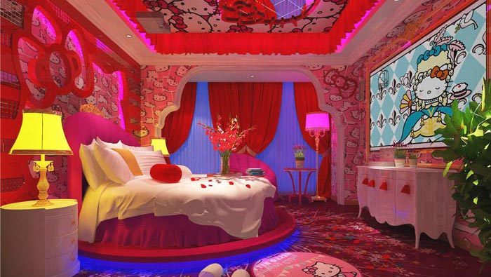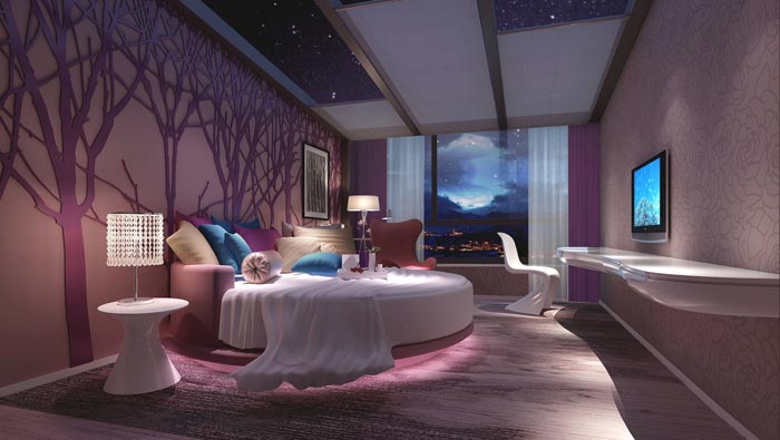 本次為情侶主題酒店裝修設(shè)計(jì)項(xiàng)目,設(shè)計(jì)師共規(guī)劃22間主題客房,目的希望為情侶們帶來22種不同的體驗(yàn),其中有Hello Kitty風(fēng)的粉紅色夢想、有沙灘海洋的無限風(fēng)光、有穿越時(shí)空的甜蜜之戀、有洞房花燭的甜蜜體驗(yàn),在這里設(shè)計(jì)師希望戀人們可以在不同的客房之中,都體驗(yàn)到不一樣的感受。