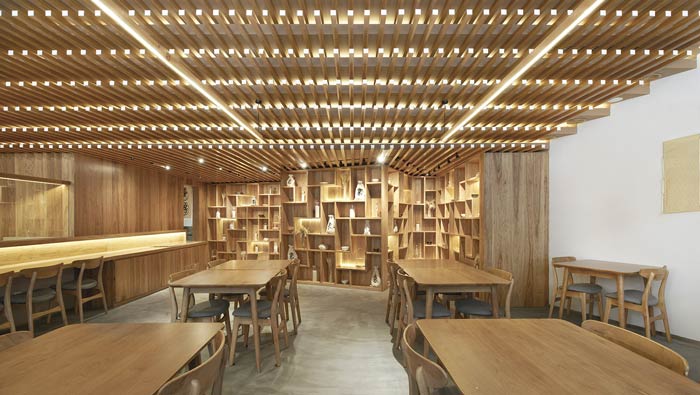 日式餐廳餐區(qū)設(shè)計:餐區(qū)、吧臺、展示區(qū)構(gòu)成一個就餐區(qū)域,在這里客戶可以看到,農(nóng)作物是如何從源頭到做成熟食,這樣的過程讓客戶吃的更香,讓客戶感受到生活的美好。