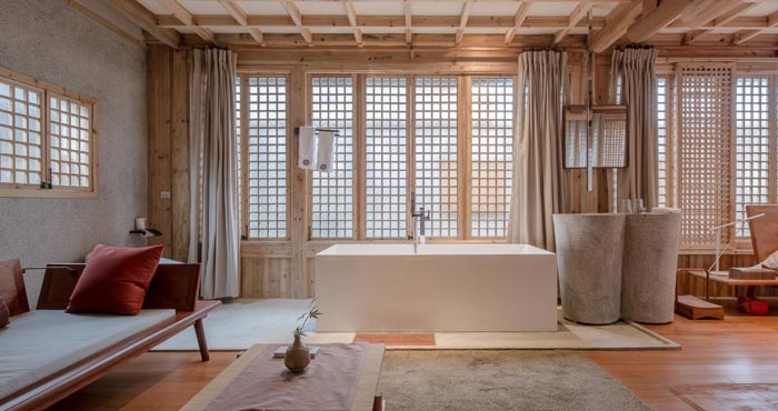 本次為古鎮鄉村民宿改造項目,這是兩棟三合院,一共400平米, 重新翻修,材料全部用的是木頭,打造一個隨性、寧靜、舒心的居住環境。