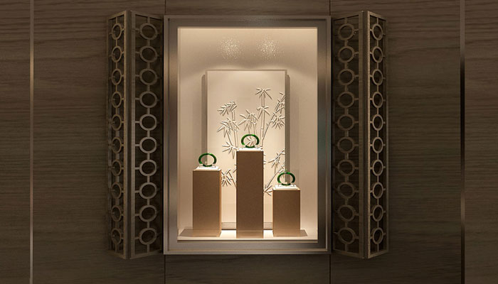設計理念:石玉琢為珂雅翡翠旗下,為了打造全新的快時尚型翡翠連鎖品牌,全新的運營模式、獨特的品牌質感,必須要從設計上面改變,設計的改變必將成為翡翠行業刺破夜空的一顆璀璨新星。石玉琢品牌整體形象設計靈感來自于傳統戲劇《拾玉鐲》,并提取古典建筑精粹元素重組終端質感,故事情節與中國式審美趣味相輔相成、相得益彰,良好的體現石玉琢品牌本身的氣質和風格。石玉琢,“遇見千年之美,”一個深深烙印著中式審美情趣的翡翠品牌新秀,攜拂面清風,以俊秀清雅的身姿屹立品牌之林。