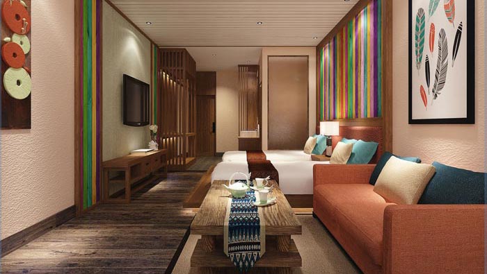 古風(fēng)+現(xiàn)代客房的設(shè)計:此處可以感覺到濃郁的古色古風(fēng),雖然不明顯但是卻總有這樣的感覺,現(xiàn)代風(fēng)的融入給人一種眼前一亮的感覺,當(dāng)客戶拖著勞累的身體進(jìn)入客房之后,一杯濃郁的茶香會讓人們瞬間感覺精神起來,靜靜的坐下來品一杯茶水,一身的疲憊盡皆消去。